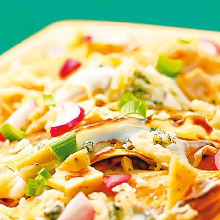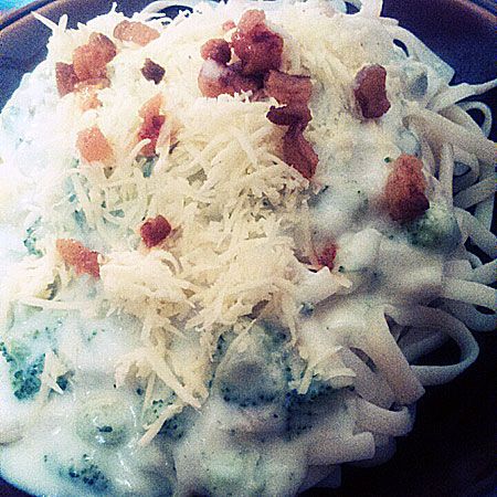 Tálalás: A tésztánkra a szósz, a szószunkra a sajt, a sajtra pedig a fűszeres szalonna darabkáink kerüljenek.